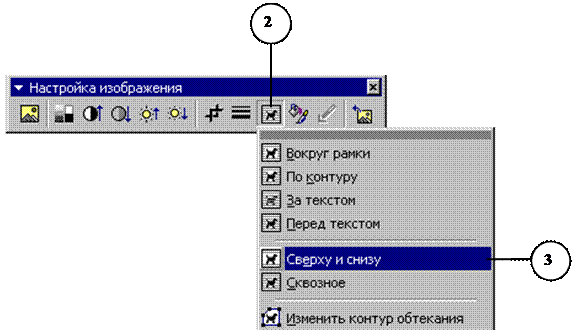 2. Щелкнуть кнопку Обтекание текстом на панели инструментов Настройка изображения.