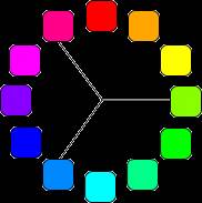 • К двум гармоничным родственно-контрастным цветам может быть прибавлен третий - главный цвет, их роднящий, ослабленной насыщенности. Цвета окажутся попарно родственно-контрастными и попарно дополнительными. Такие сочетания высокогармоничны и колористически богаты.