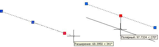 Якщо відрізок відмітити, то можна побачити три характерні точки: за кінцеві його можна розтягувати і змінювати напрямок, а за центральну – переміщувати (рис.16). Цей процес називається редагуванням за допомогою ручок. Він дуже зручний і використовується для всіх графічних примітивів AutoCAD.