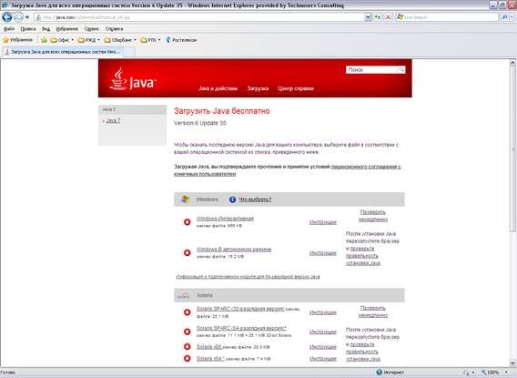 Xi Обратите внимание!Подробные инструкции по установке и проверке ПО JAVA можно найти на сайте разработчика по ссылке: http://java.com/ru/download/help/windows_manual_download.xml