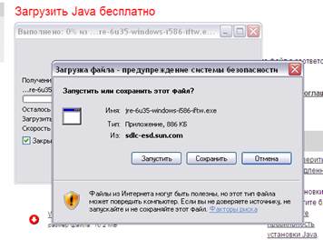 Для скачивания рекомендуется использовать ссылку для OC Windows «Windows Интерактивная». В появившемся окне следует выбрать опцию «Запустить» или «Сохранить». Во втором случае, пользователю будет необходимо инициировать запуск установки JAVA вручную из директории, куда был сохранен файл.