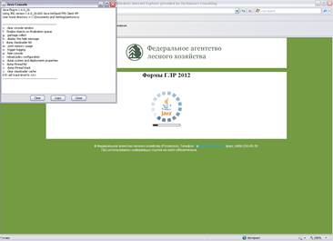 При работе в модуле ввода и контроля данных или редакторе форм, вместе с окном входа в тот или иной модуль должно автоматически открываться дополнительное окно Java-консоли, в котором отражается техническая информация работы системы.