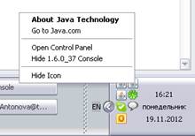 Медленная работа системы может зависеть от недостатка оперативной памяти. В данном случае, можно прописать на рабочем месте пользователя дополнительные настройки Java. Для этого, в трее необходимо вызвать контексное меню Java и выбрать пункт «Open Control Panel».