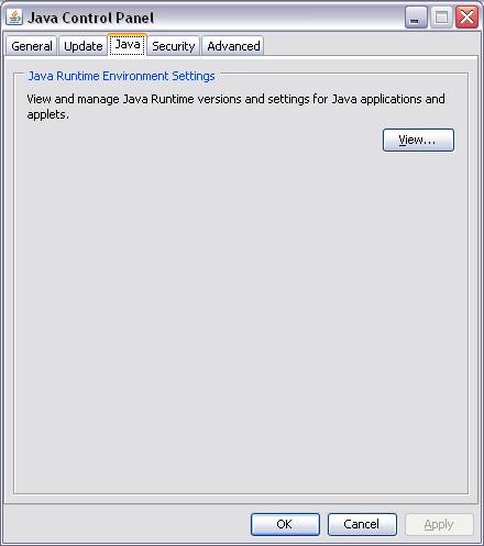 В открывшемся окне надо перейти на вкладку Java и нажать кнопку View.