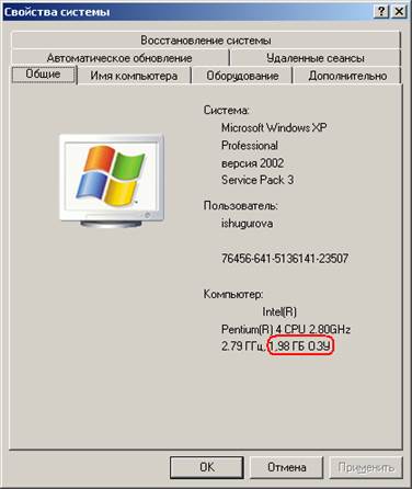 Например, при объеме оперативной памяти 1,98Гб