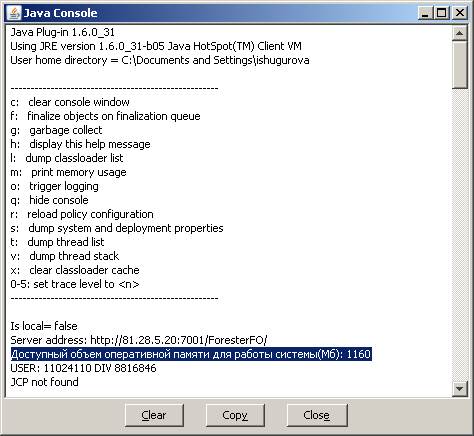 Контрольным моментом при установке параметра является отображение в java-консоли значения максимально доступного размера оперативной памяти для работы приложения.