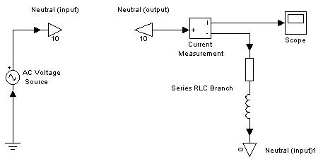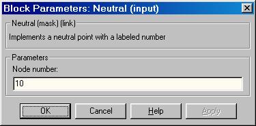 Блок позволяет соединить между собой далеко отстоящие на схеме электрические узлы без видимых линий связи (проводов). Блок с номером узла равным нулю обеспечивает соединение с землей. Для удобства работы в библиотеке представлены два варианта блока со входным портом - Neutral (input) и с выходным - Neutral (output).
