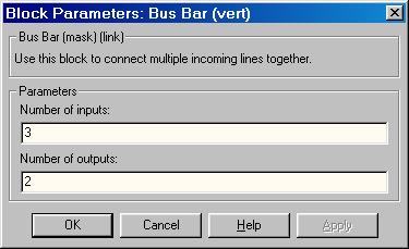 Блок шины может совсем не иметь входных или выходных портов. На рис. 1.14 показан вариант использования блока, когда требуется объединить несколько (в данном случае две) выходных линии связи. Поскольку в библиотеке отсутствует аналог L-образного соединителя для выходных линий, для этой цели можно использовать блок шины.