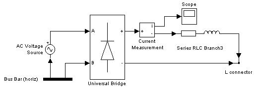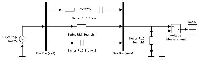 На рис. 1.13 показана схема с использованием блока Bus Bar. C помощью данных блоков линия связи сначала разделяется на 3 отдельных линии к которым подключаются элементы схемы, а затем три лини вновь объединяются в одну.