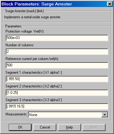 Saturation characteristic (pu) [ i1 , phi1 ; i2 , phi2 ; ... ]: [Характеристика насыщения сердечника]. Значения намагничивающего тока и магнитного потока задаются в относительных единицах. Параметр доступен при моделировании нелинейного трансформатора (флажок Saturable core установлен).