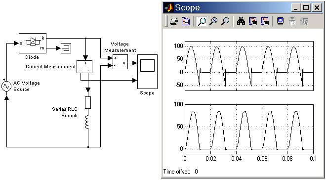 На рис. 1.48 показана схема модели, однополупериодного выпрямителя, работающего на активно-индуктивную нагрузку.