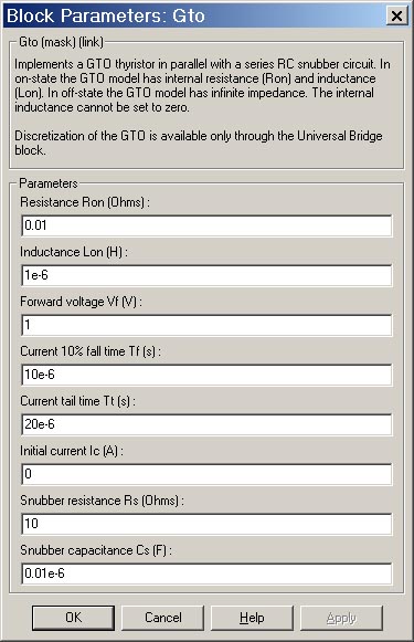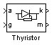 Моделирует тиристор. В библиотеке SimPowerSystem имеется две модели тиристора: Thyristor (упрощенная модель) и Detailed Thyristor (уточненная модель).