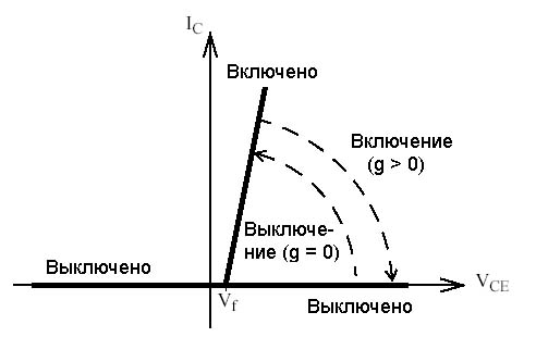 Статические вольт-амперные характеристики модели IGBT транзистора для включенного и выключенного состояний показаны на рис. 1.56.
