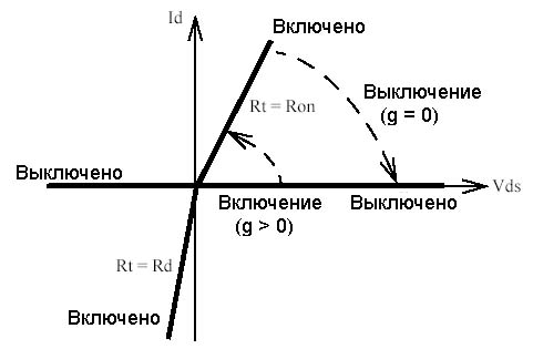 Статические вольт-амперные характеристики модели Mosfet транзистора для включенного и выключенного состояний показаны на рис. 1.60.