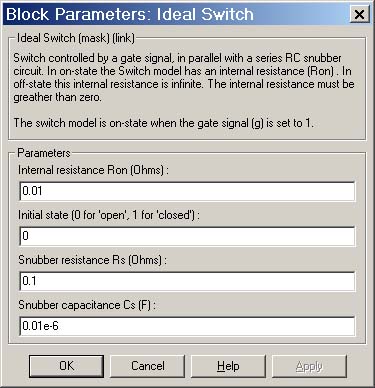На выходном порту блока обозначенном m, формируется векторный Simulink-сигнал из двух элементов. Первый элемент -ток ключа, второй - напряжение ключа.