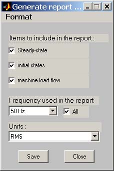 Блок Powergui может создавать отчет, включающий в себя значения измеряемых переменных в установившемся режиме, токов и напряжений источников, нелинейных моделей и переменных состояния схемы. Отчет сохраняется в текстовом файле с расширением rep. Для создания отчета необходимо нажать кнопку Gеnerate report в окне блока Powergui. После чего появится окно Generate report (рис. 2.10) в котором можно задать разделы, включаемые в отчет.