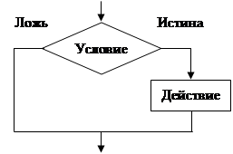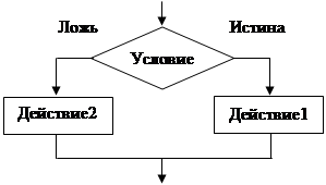 Условный оператор IF предназначен для изменения порядок выполнения операторов в зависимости от истинности или ложности некоторого условия. Он предписывает выполнять некоторое действие только в том случае, когда выполняется заданное условие. Это условие записывается в виде логического выражения, а действие, которое нужно выполнить, задается в виде последовательности операторов. Существует две конструкции оператора ветвления – простая и расширенная:
