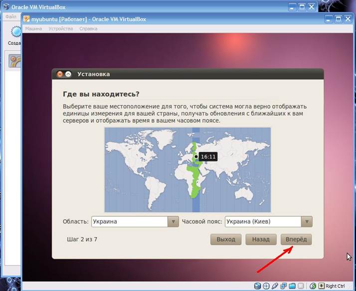 У меня все определилось автоматом, если у вас другой часовой пояс, то выбираем его и движемся Вперед.