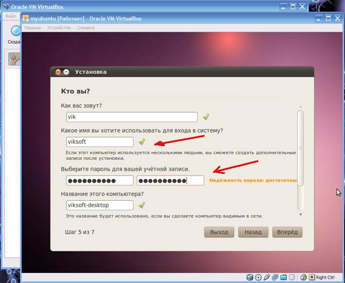 В этом окне нам предлагают познакомиться , вписываем имя, логин и пароль на вход в систему и название рабочей станции (латинские буквы и цифры). Логин и пароль лучше где то записать и жмём Вперед.