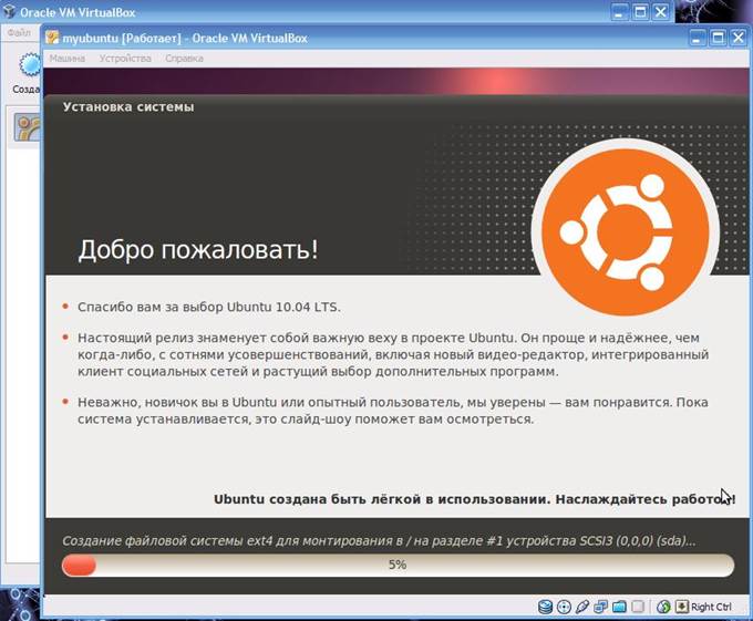 Наконец то мы можем приступить непосредственно к самой установке Ubuntu. Запускаем наш подготовленный в предыдущих статьях:
