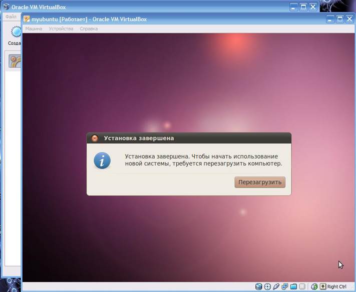 По окончании установки видим надпись которая гласит, что нам нужна Перезагрузка. Жмём её.