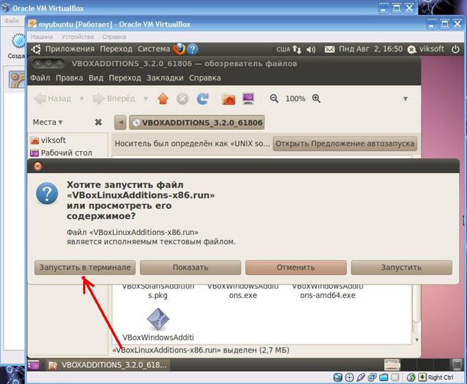 Выскочит вот такое окошко нажимаем Запустить в терминале и переходим к следующему скриншоту.