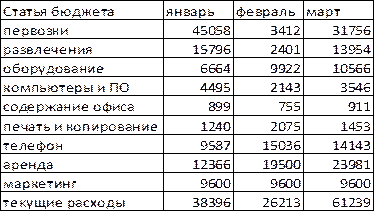 : Фактические расходы по статьям бюджета.Рассчитайте итог по столбцам, среднее значение итоговой строки. Определите проект бюджета на следующий квартал на основе вычисленного среднего значения по каждой статье бюджета текущего квартала и с учетом роста затрат по всем статьям на 20 %. Постройте диаграмму по расходам. Задайте денежный формат. Создайте нижний колонтитул с информацией: работу выполнил ФИО, дата, время. Подготовьте документ к печати.