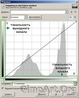 Из сказанного следует, что входные уровни (исходные значения интенсивности пикселов) расположены на горизонтальной оси графика –X, а выходные уровни (новые значения цветов) соответственно расположены на вертикальной оси графика – Y.
