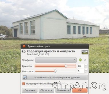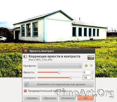 Теперь воспользуемся инструментом (Цвет – Яркость/Контраст) и передвинем ползунок яркости вправо до значения 70.