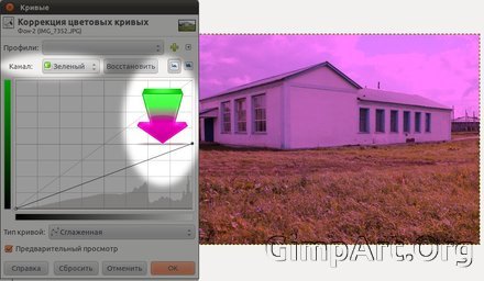 Изменение же кривой в зеленом канале вверх приведет к увеличению зеленого цвета,