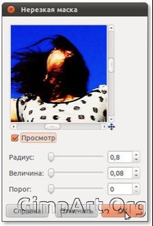 Шаг 3. Добавим резкости снимку. Для этого идем в «Фильтры –Улучшение –Нерезкая мазка» и вводим следующие параметры.