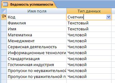 Обратите внимание: ключевое поле «Счетчик» внесен в таблицу автоматически. Если напротив поля отсутствует значок ключа, то на панели инструментов щелкните по этому значку.