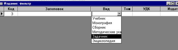 Поле Фильтр дляиспользуется, если фокус ввода находится в поле таблицы и нужно ввести конкретное искомое значение или выражение, результат которого будет применяться в качестве условия отбора. Назначение и вызов Фильтра по выделенному очевидно. Обратное действие по отношение к Фильтру по выделенномувыполняет команда Исключить выделенное.