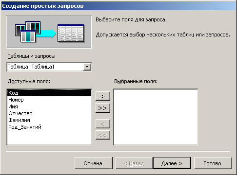 11. В следующем окне мастер продемонстрирует два столбца таблицы-источника, скрыв столбецКод_Контакты, содержащий идентификатор записи. Щелкните на кнопке Далее.