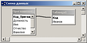 1. Выберите команду Сервис → Схема данных (Tools → Relationships). Откроется окно, схематически изображающее связи базы данных. На рис. 16.11 видно, что линия связи соединяет поля Код_Контактытаблицы Контакты и Контакт таблицы Список.