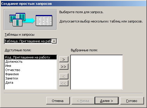 8. Введите имя запроса Перечень контактов и щелкните на кнопке Готово.
