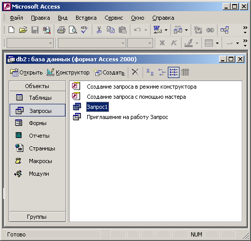 1. Выделите в окне базы данных (рис. 17.4) значок запроса Перечень контактов.