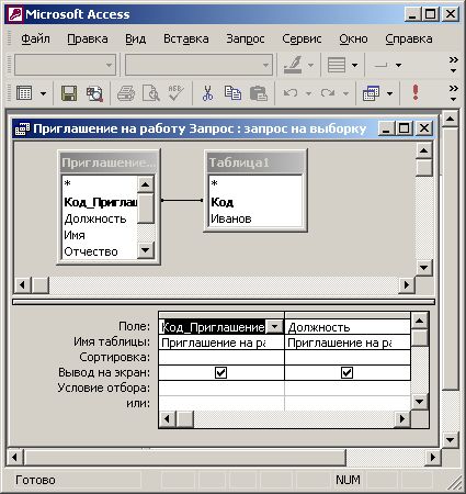 15. Щелчком на кнопке Вид вернитесь в конструктор запроса.