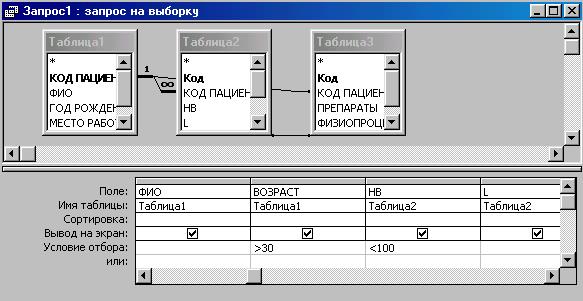 По завершении создания запроса его можно запустить, щелкнув на кнопке Запуск панели инструментов или выбрав команду Запрос – Запуск, после чего результаты запроса будут представлены на экране в режиме таблицы.