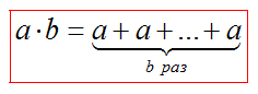Умножить число а на b - значит найти сумму b слагаемых, каждое из которых равно a.
