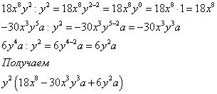 Что останется от каждого члена после вынесения общего множителя за скобки? Что записать в скобках? Необходимо каждый член разделить на общий множитель, который выносим за скобки. Например, при вынесении y2 за скобки в нашем примере