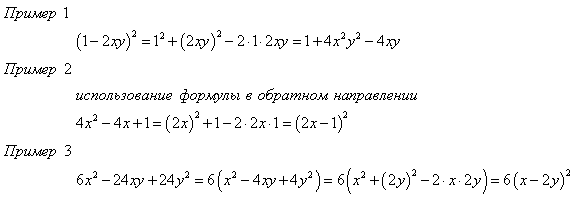 3) Формула квадрата разности