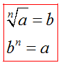 Корнем n-й степени из числа а называется такое число b, n-я степень которого равна а, то есть