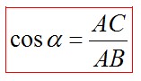 Косинусом острого угла прямоугольного треугольника называется отношение прилежащего катета к гипотенузе.
