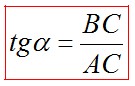 Тангенсом острого угла прямоугольного треугольника называется отношение противолежащего катета к прилежащему.