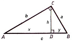 Высота прямоугольного треугольника, проведенного из вершины прямого угла, есть среднее пропорциональное между отрезками, на которые делится гипотенуза этой высотой.