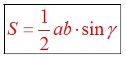 Теорема. Площадь треугольника равна половине произведения двух его сторон на синус угла между ними.