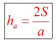 Длина высоты треугольника АВС, проведенной из вершины А определяется по формуле: