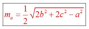 Длина медианы треугольника АВС, проведенной из вершины А определяется по формуле: