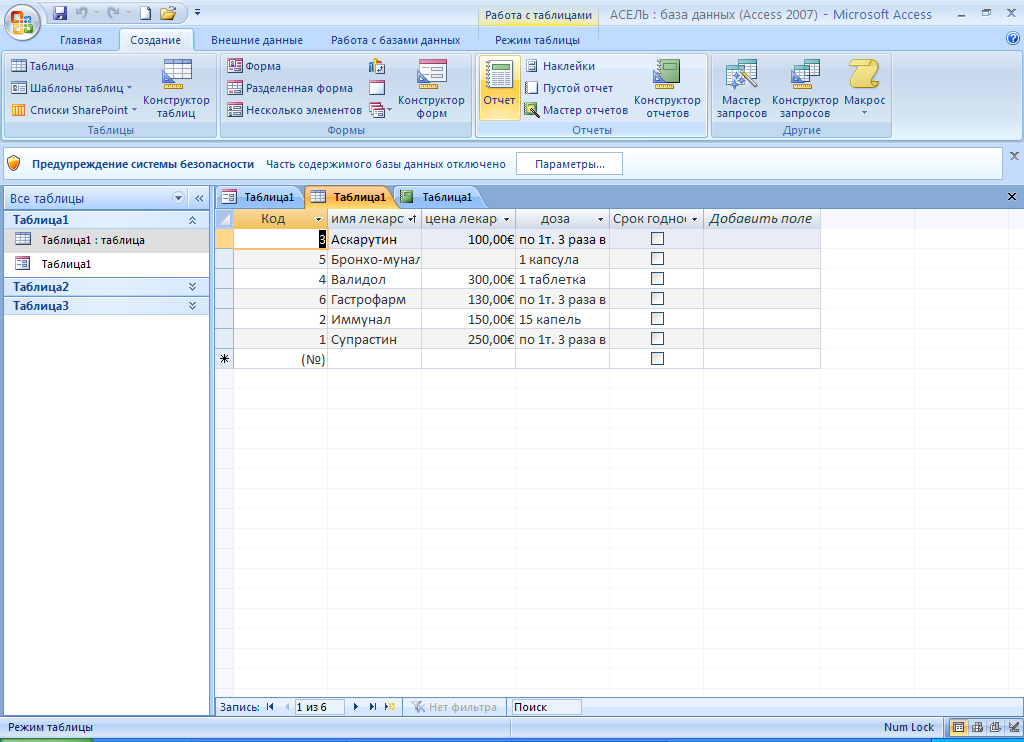 2. Перейдите на вкладку Создание, затем в группе Отчеты щелкните на пиктограмме Отчет.